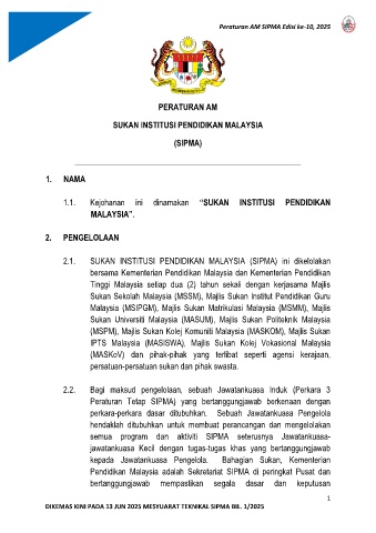 2.1. SUKAN INSTITUSI PENDIDIKAN MALAYSIA (SIPMA) ini dikelolakan